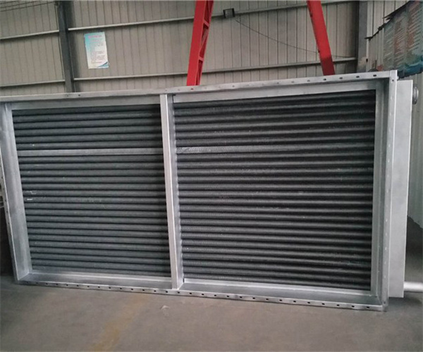 不锈钢蒸汽换热器主要由顺空气流向的三排叉排列螺旋翅片管束组成,其翅片管均用Ф21× 2mm无缝钢管绕制上15×0.5mm皱折钢带而成,呈螺旋状,片距有5mm—大“D”,6mm-中“Z”、8mm-小”X”三种共三十八种规格。